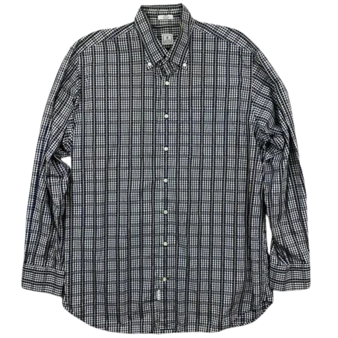 Description: Peter Millar Button-Down Shirt in black and grey offers a refined balance of comfort and sophistication. Crafted from premium cotton fabric, this shirt features a polished fit that works well for both casual and business-casual wear. A versatile Peter Millar staple in good condition.