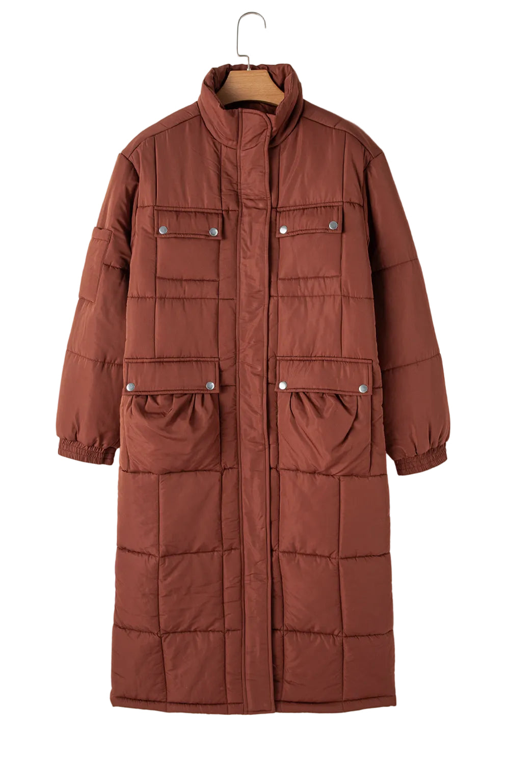 Wrap yourself in warmth and style with this puffer coat! The cozy quilted design keeps you snug during chilly days, while the neck design adds an extra layer of protection against cold winds. A smooth zip closure makes getting dressed effortless, and the midi length hits just right—long enough to keep you covered, short enough to move freely. Perfect for those moments when you want to look put-together without sacrificing comfort. Your new cold-weather essential awaits! 100% Polyester