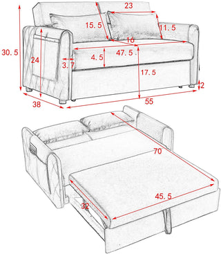 Adjustable Velvet Sleeper Loveseat and Pull-Out Bed
