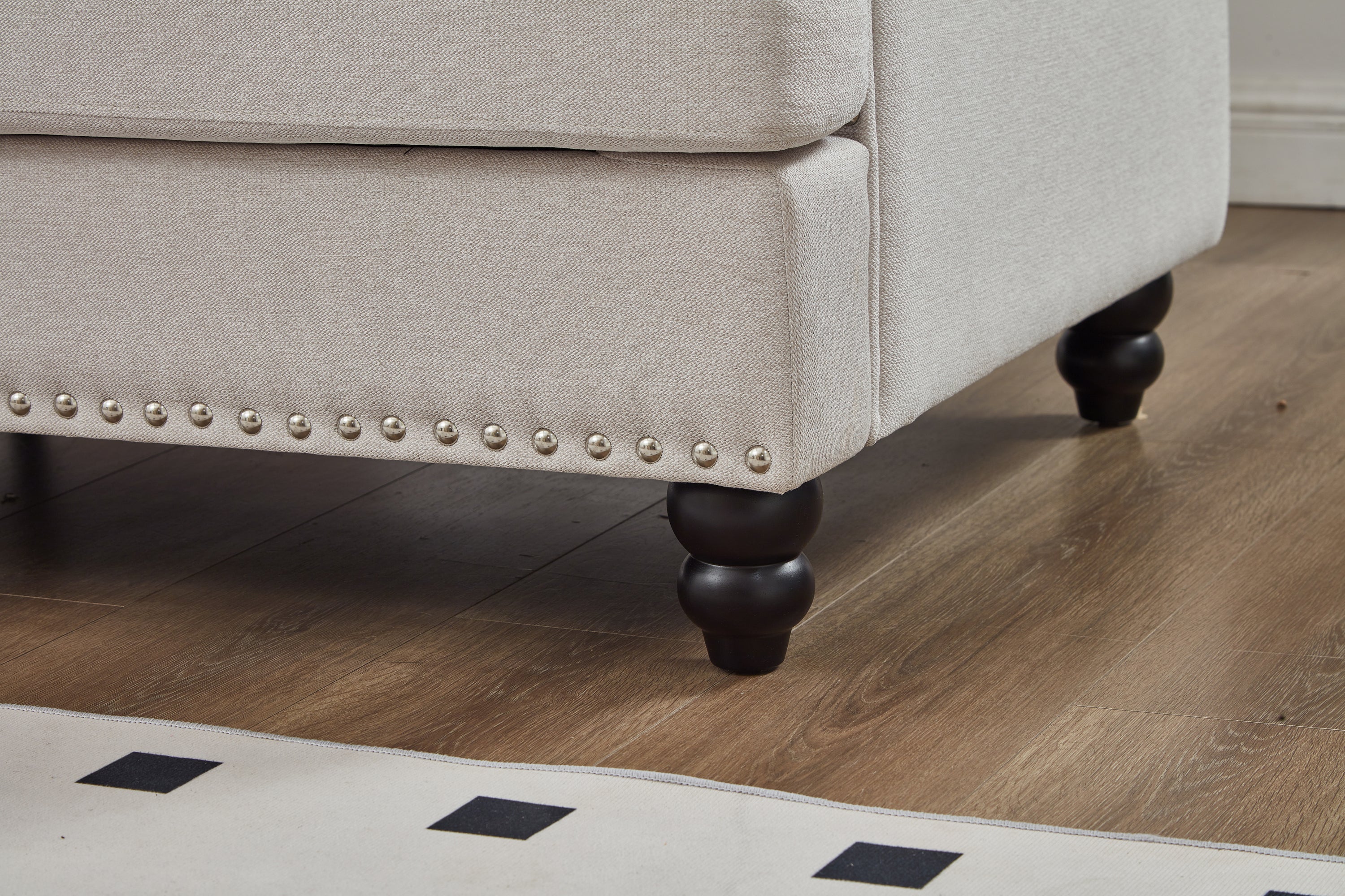 Classic Design: Round armrests with silver nailhead detailing for a stylish, elegant look