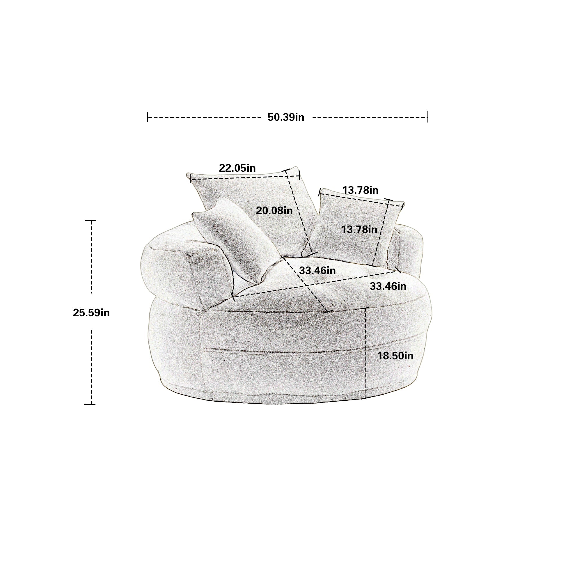 The sofa’s compact, circular design maximizes space efficiency while creating a warm, inviting focal point. Paired with three matching chenille throw pillows, it enhances both comfort and style, offering adjustable lumbar support and a cohesive aesthetic. The pillow’s filler is designed to retain shape over time, ensuring lasting plushness.