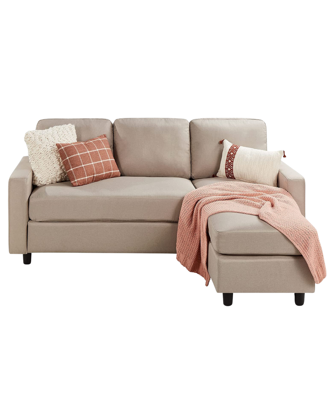 Maximize your space with this compact sectional sofa featuring a versatile reversible ottoman that can be positioned on either side to create a chaise lounge setup. Crafted with a sturdy wood frame and super soft fabric, this sofa is designed to provide comfort for up to 3 people, supporting a total weight of 680 lbs. Its multipurpose design fits perfectly in apartments, dorms, home offices, or bonus rooms. Tool-free assembly allows you to set up the sofa in as little as 15 minutes.