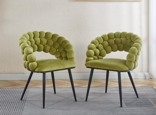 Perfect for living rooms, offices, lobbies, bedrooms, and other modern interiors, this set of two chairs adds both style and comfort. Assembly is quick and simple with included hardware and instructions. The vibrant green upholstery brings a cheerful touch to your home décor.