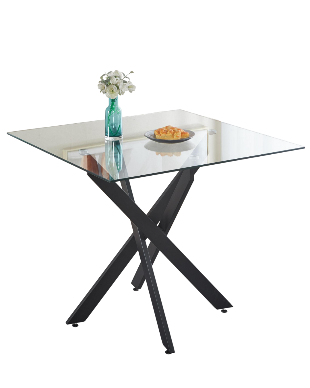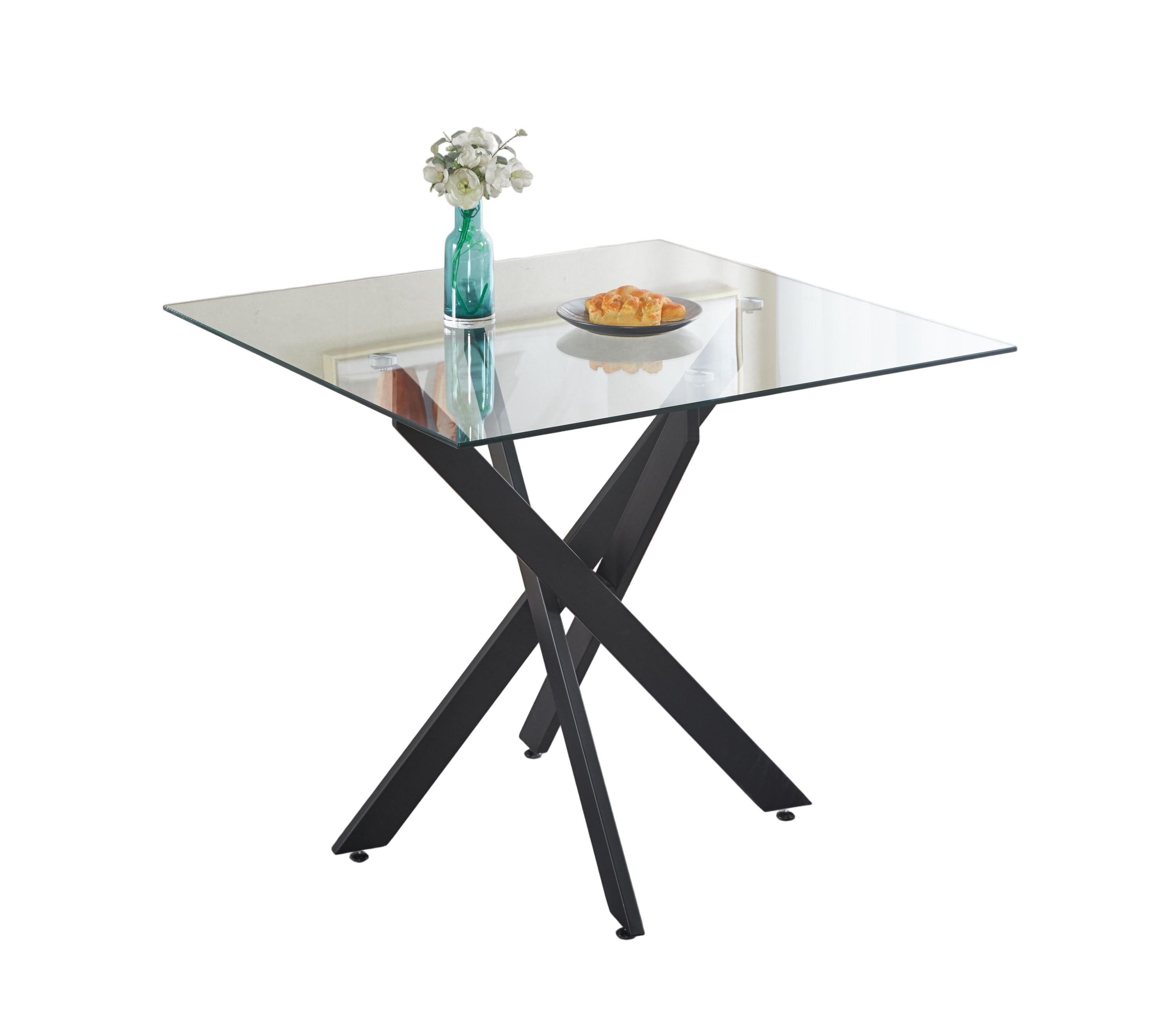 Elevate your dining space with this modern tempered glass dining table featuring a sleek cross-metal leg design. Crafted with a durable glass top and sturdy metal base, it delivers both style and stability without wobbling. Its smooth, easy-to-clean surface makes maintenance simple, while its minimalist aesthetic fits effortlessly into contemporary homes, apartments, and open-concept spaces.