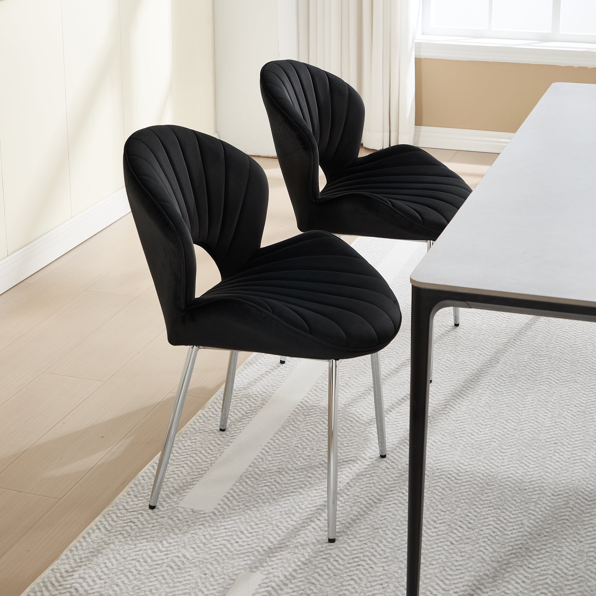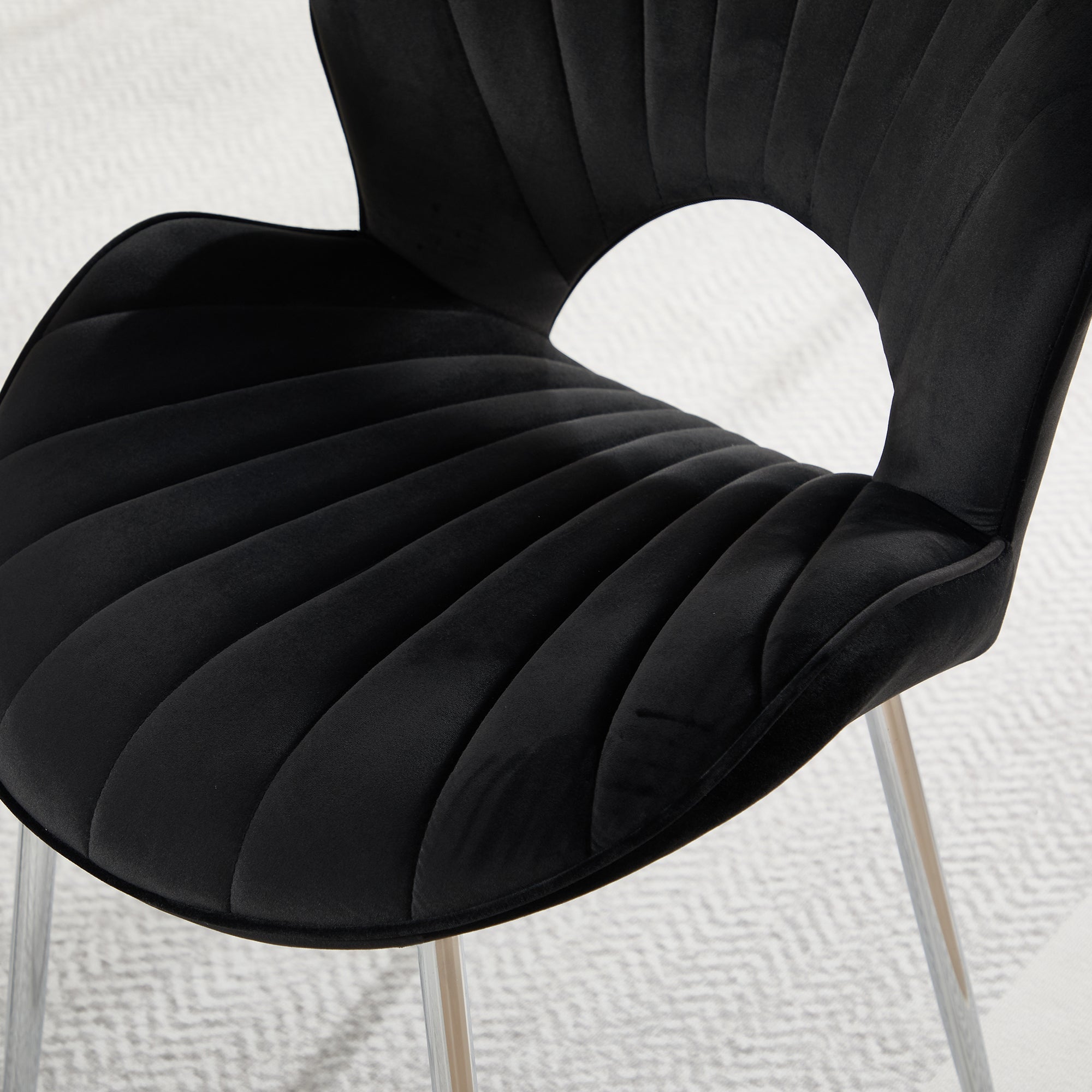 This modern hollow-back upholstered chair blends comfort, functionality, and contemporary design—perfect for dining areas, living spaces, offices, or studios. Built with high-resilience foam and custom-made fabric, the seat offers upgraded comfort and support for long periods of sitting. The enlarged 21.6-inch seat surface provides spacious relaxation, making it a great choice for both daily use and hosting.