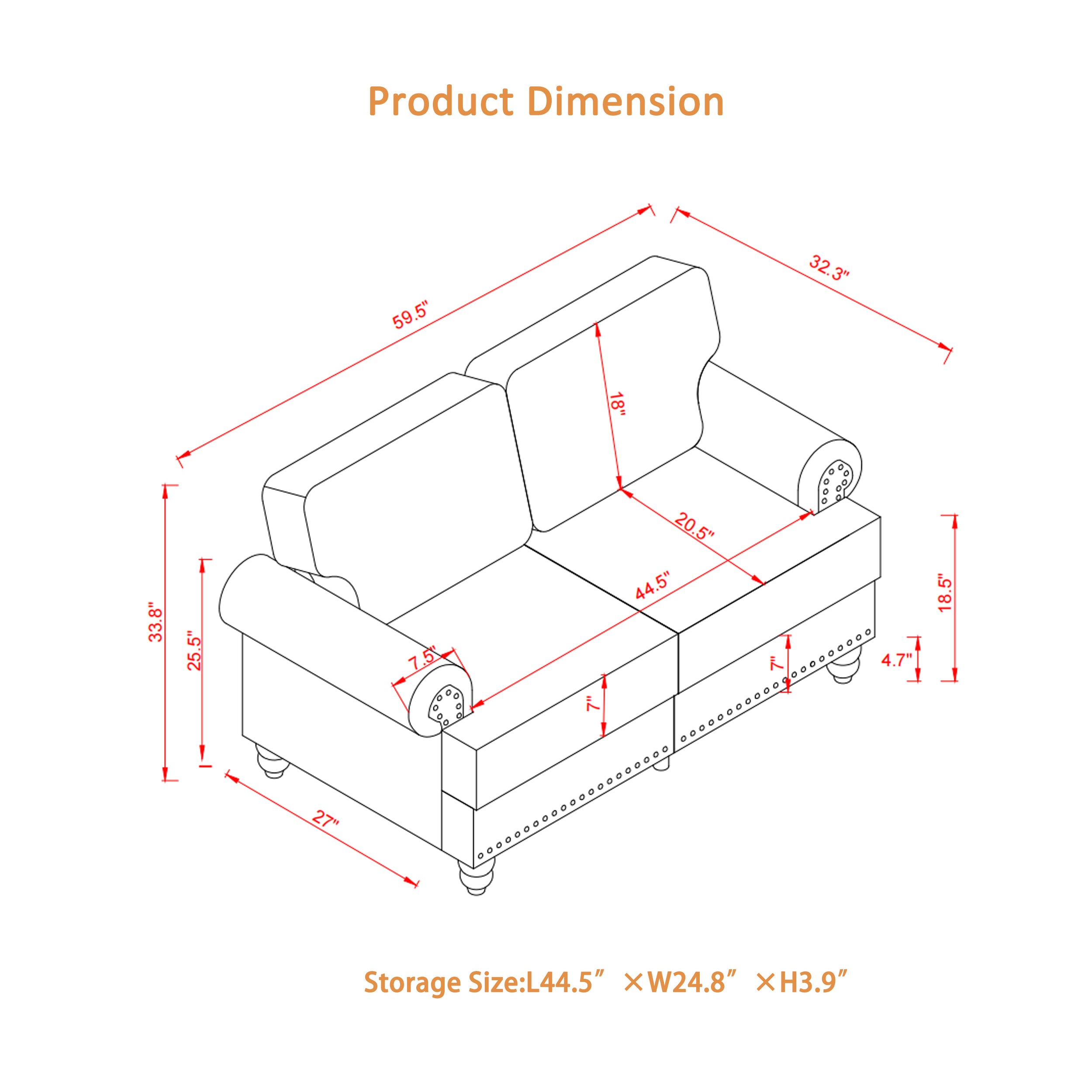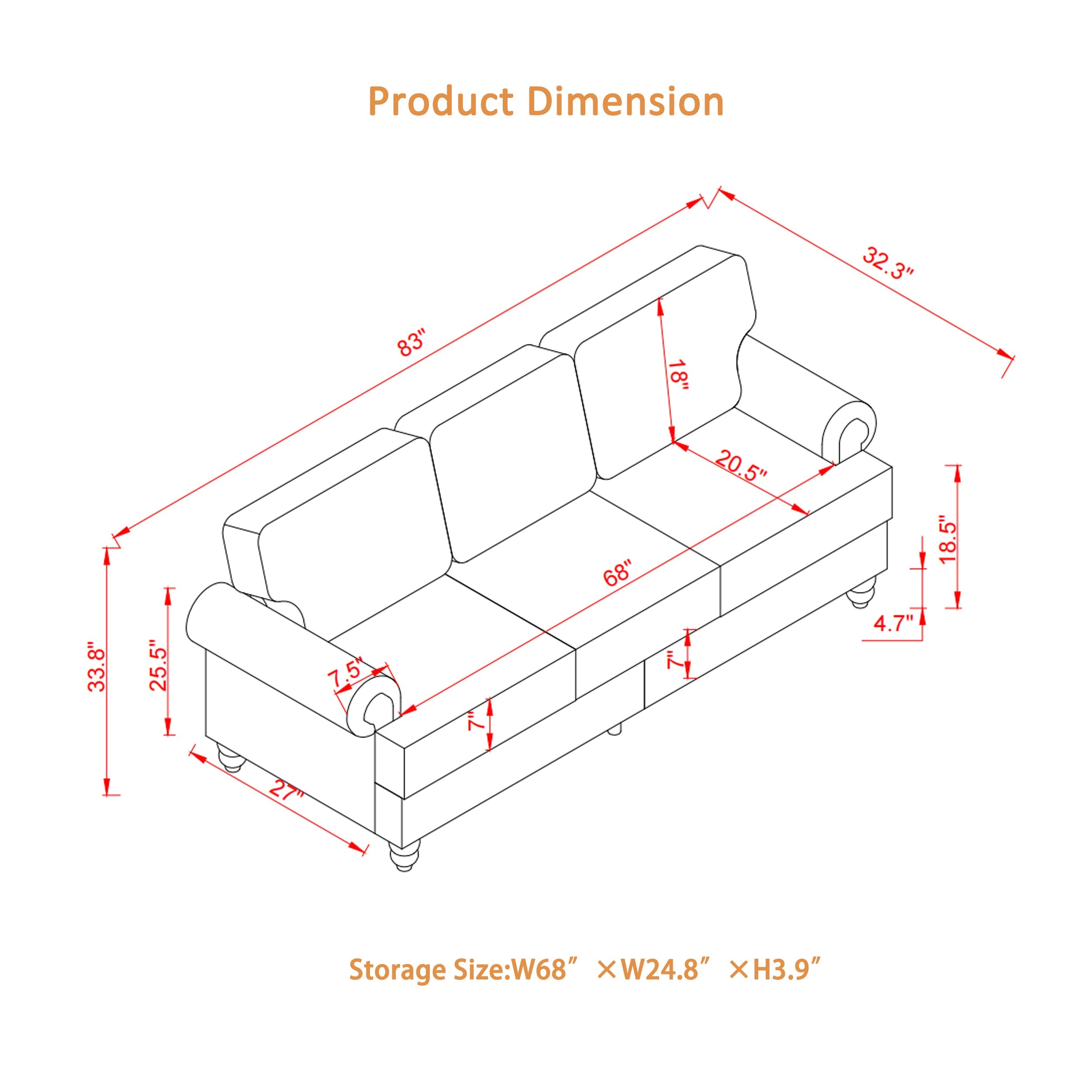 | Storage Space Size | Loveseat:L44.5'×W24.8'×H3.9' Sofa:L68'×W24.8'×H3.9' |