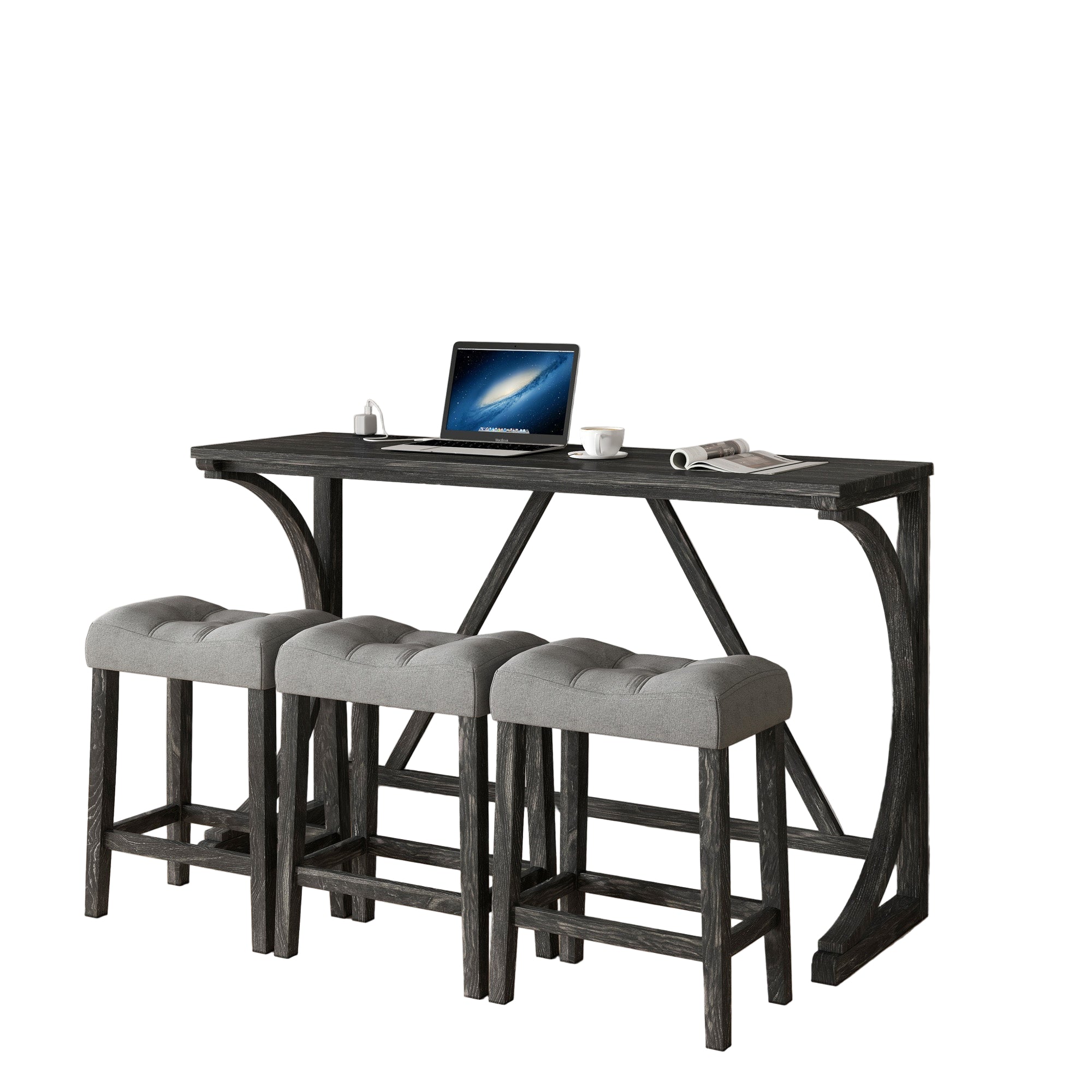 - 1.Exquisite appearance:Industrial dining table: This bar table and chair features a high-quality imitation wood grain surface, making it an excellent addition to your kitchen, gaming room, or living room. Space saving and perfect fit: Three 18 'long x 11' wide x 24 'high bar stools can fit perfectly under the table when not in use, maximizing space while maintaining aesthetics. Foot mats not only increase stability but also prevent floor scratches.