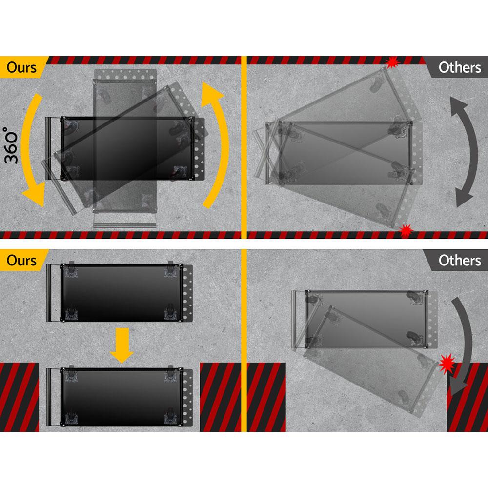 The cart features three spacious storage tiers and a screwdriver storage bay, providing easy access to tools and components. A side handle ensures comfortable handling, while omni-directional castors with lockable brakes allow for smooth mobility and secure placement.