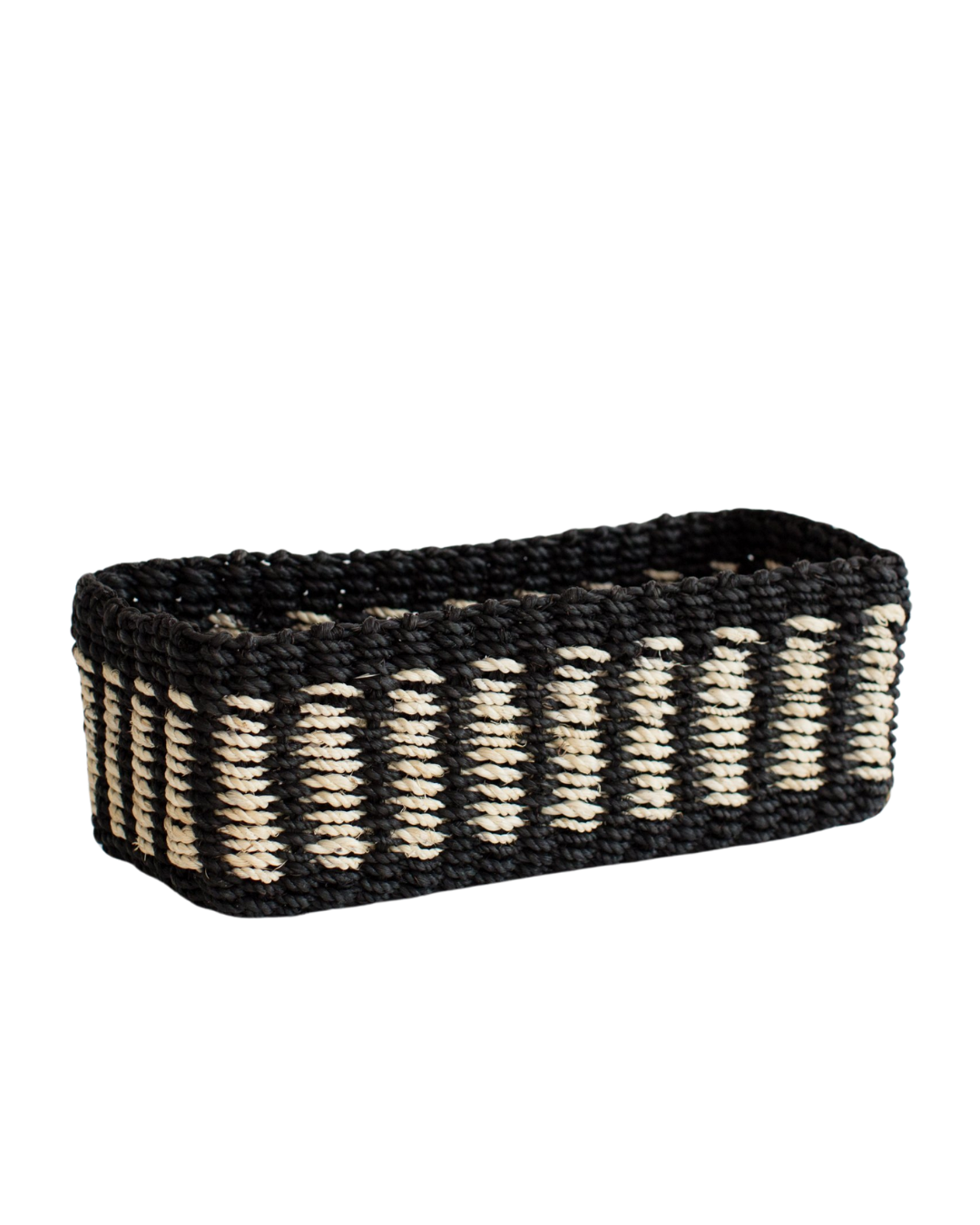 Keep your space organized and stylish with this handwoven seagrass tray, featuring a striking black and white band design. Perfect for holding keys, mail, cutlery, fruits, or small household items, this tray blends utility with artisanal charm.