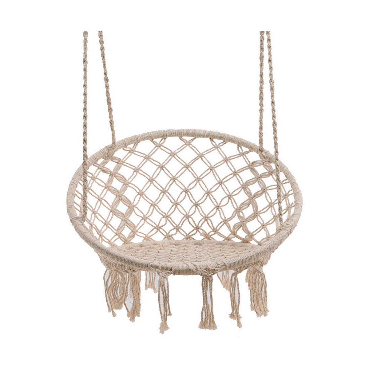 Enjoy comfort and style with the Decoris Bali cotton swing. Crafted from durable cotton with decorative fringe, this swing supports up to 120 kg (264 lbs) and adds a cozy, relaxing touch to any space. Its neutral beige and multicolour design complements a wide range of décor, while the soft cotton fabric provides a comfortable seating experience. Perfect for balconies, patios, or indoor use, it combines functionality with a stylish, bohemian flair.