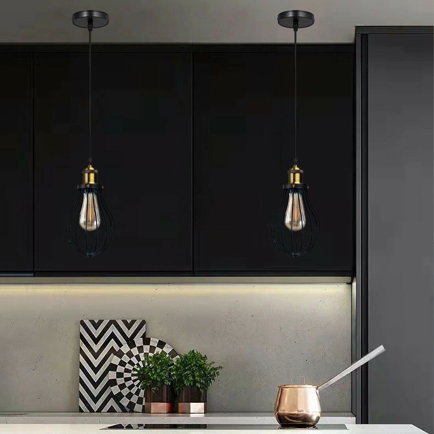 Bring modern vintage industrial style to your space with this black metal wire cage pendant lamp. Designed for both lighting and décor, this fixture adds a striking accent to any room while providing warm illumination. Compatible with E27 bulbs (not included), it creates a cozy and inviting atmosphere in homes, cafés, restaurants, and loft spaces.