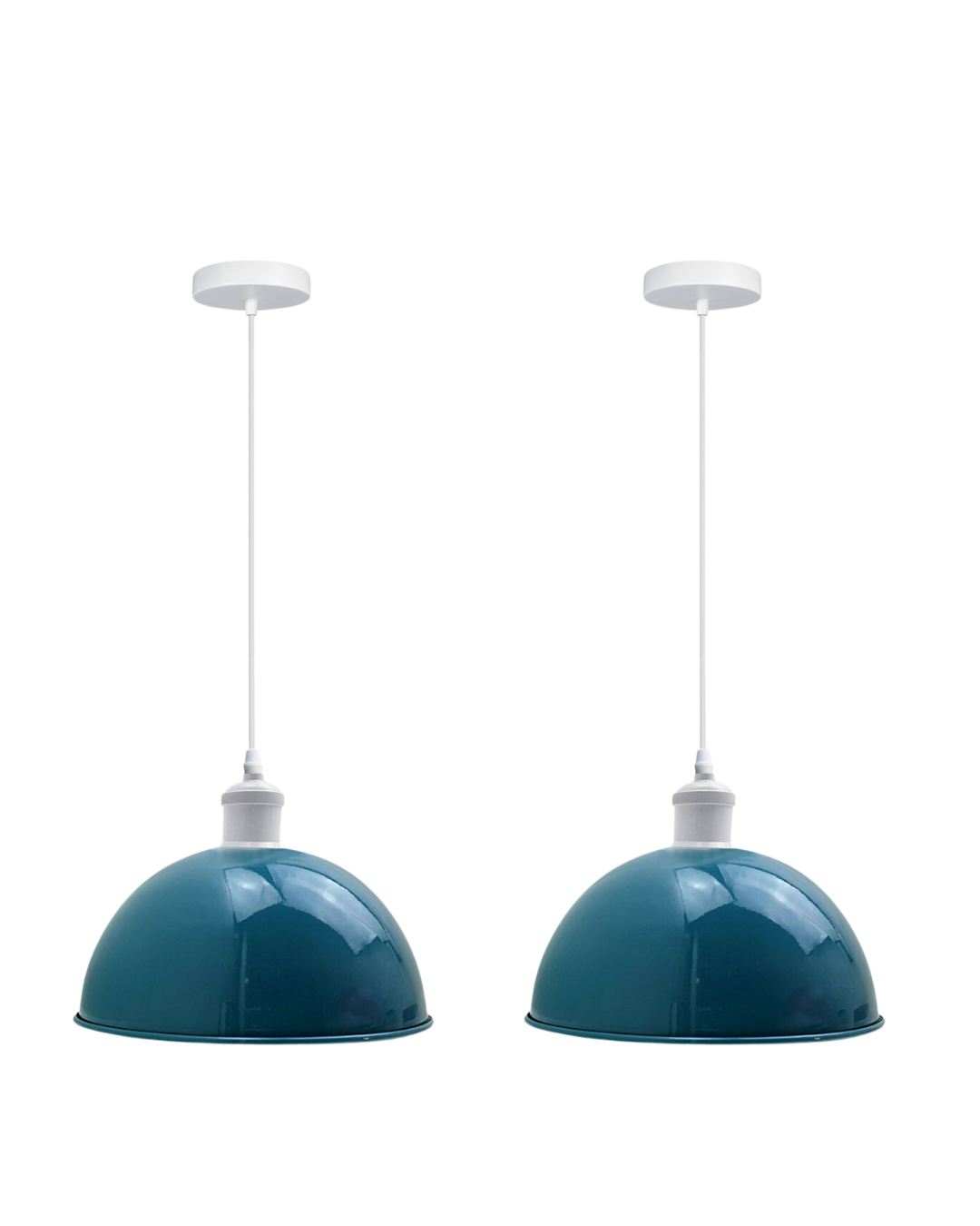 • 2-pack pendant lights with sturdy metal dome shades in vibrant blue.