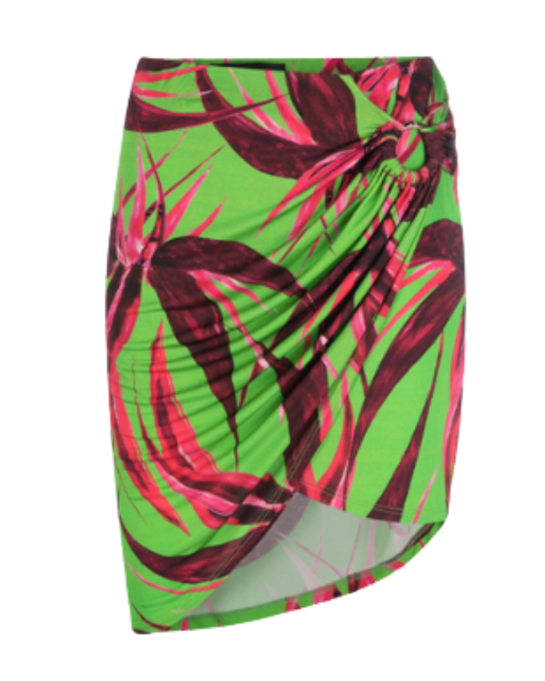 Description: Louisa Ballou Draped Skirt features a fluid, asymmetrical silhouette with a vibrant mix of green, red, and pink tones. Crafted from lightweight stretch fabric, it moves beautifully with the body for a flattering drape. A bold, tropical-inspired piece that embodies the brand’s signature resort elegance. New with tags.