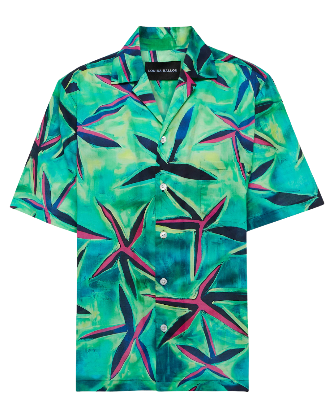 Description: Louisa Ballou Printed Dress Shirt captures the brand’s vibrant, expressive energy with a multicolor blend of green, blue, and red tones. Crafted from smooth, lightweight fabric, this statement shirt combines elevated tailoring with bold artistic flair. In excellent condition.
