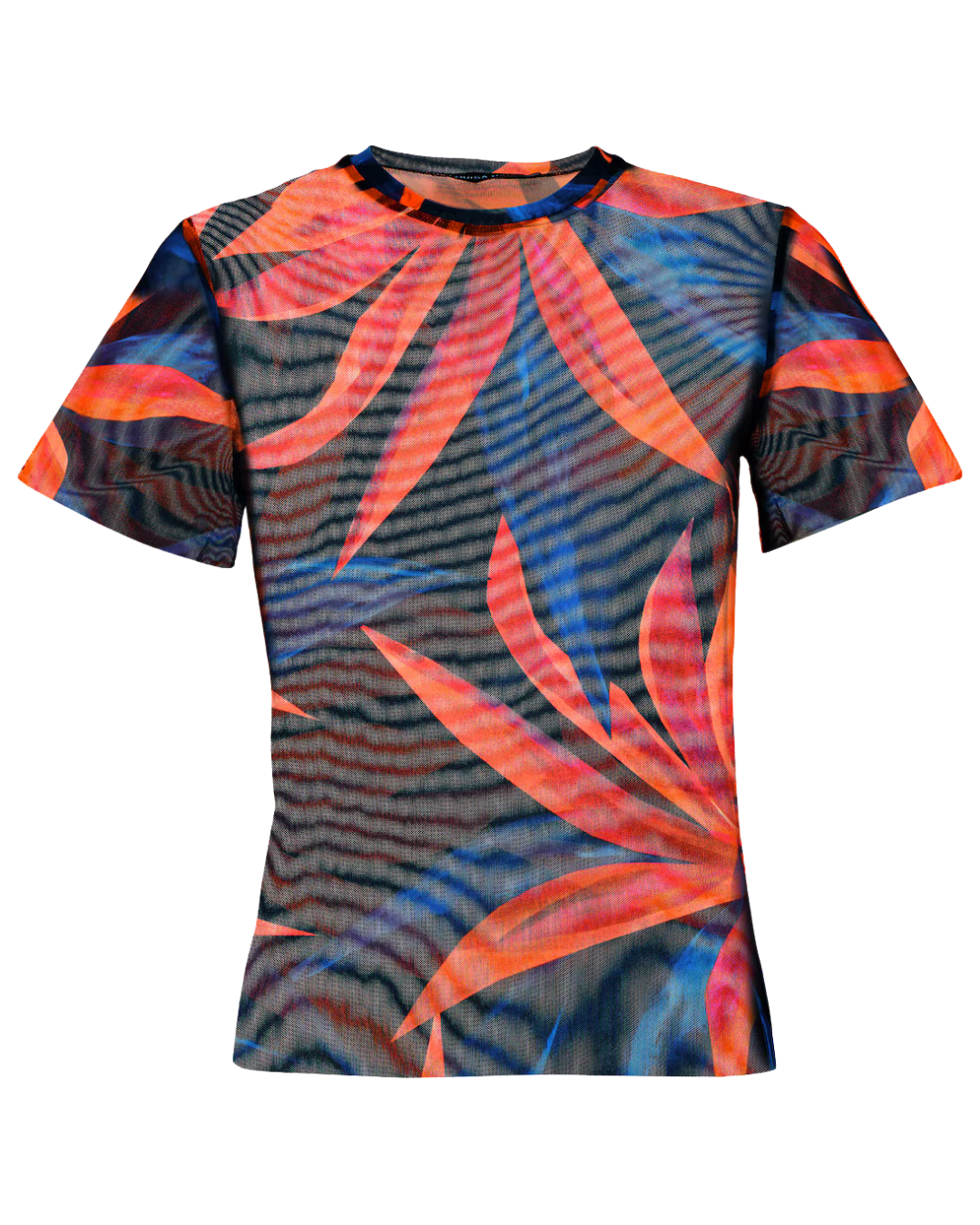 Description: Louisa Ballou Sheer Beach T-Shirt features the designer’s signature vibrant coastal palette in blue, red, and black. Crafted from lightweight sheer fabric, it offers an airy, relaxed fit ideal for layering over swimwear or pairing with high-waisted bottoms. New without tags.