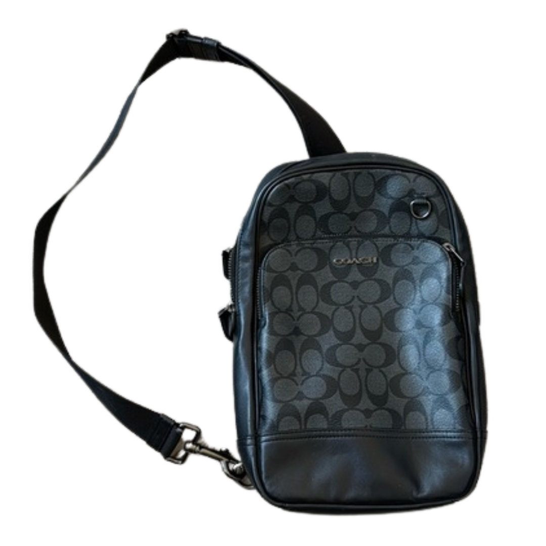 Description: This Coach Racer sling bag in black monogram combines modern utility with timeless brand style. Designed with an adjustable crossbody strap, it offers hands-free convenience while keeping essentials secure and organized. The main compartment and zippered pockets provide practical storage, making it ideal for commuting, travel, or everyday wear. A sleek, versatile accessory with the signature Coach finish.