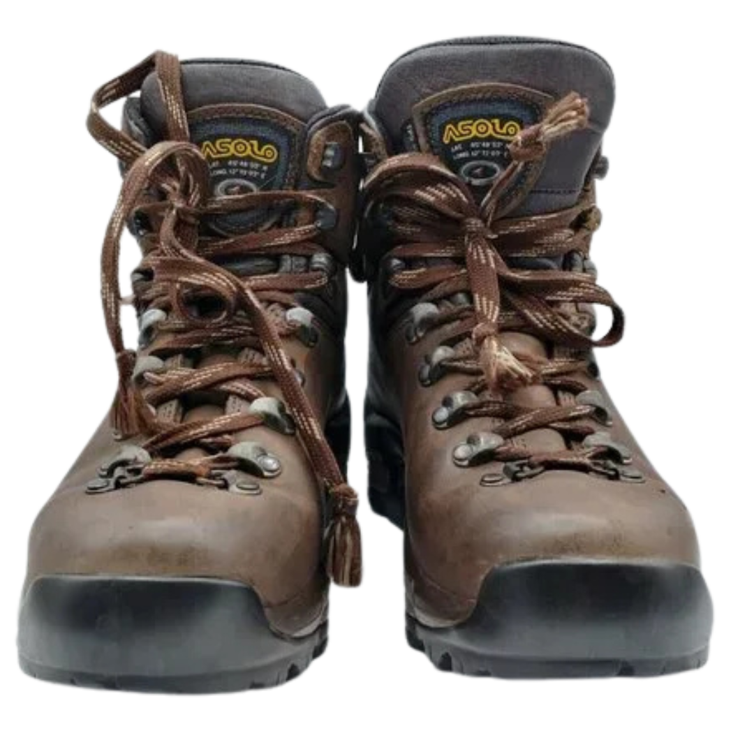Description: Asolo Hiking Boots in light and dark brown showcase the brand’s reputation for rugged outdoor footwear. Built with durable leather uppers, cushioned support, and traction outsoles, these boots are designed for comfort and stability on trails and uneven terrain. A quality hiking boot in great condition.