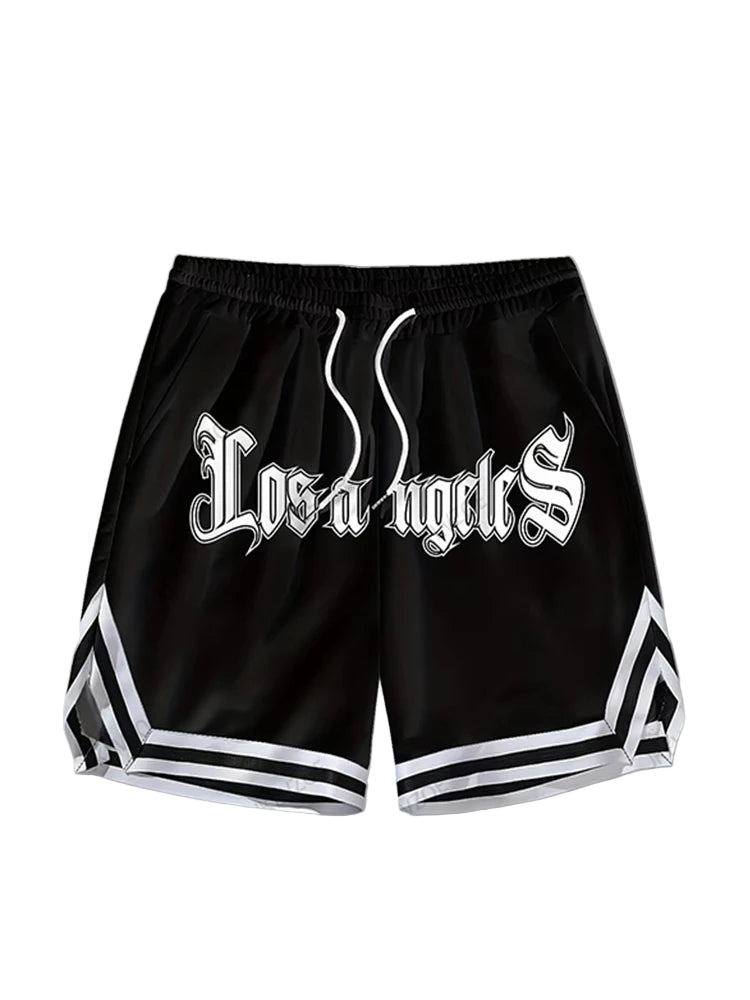 Trendy unisex basketball shorts featuring a Los Angeles print. Lightweight, breathable, and perfect for sports, workouts, or casual summer wear. Elastic waistband ensures a comfortable fit for all-day activity. Available in white and black.