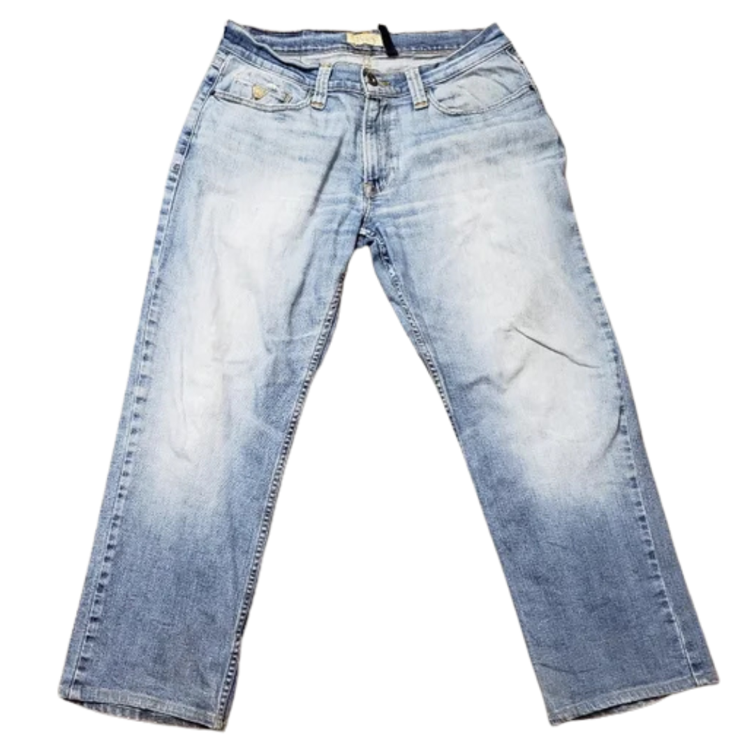 Description: Guess Tapered Jeans in light wash blue feature a modern fit that narrows from the knee to the ankle, offering a clean and contemporary look. Made from durable denim with subtle fading, these jeans balance casual versatility with iconic Guess style. A dependable everyday essential in good condition.