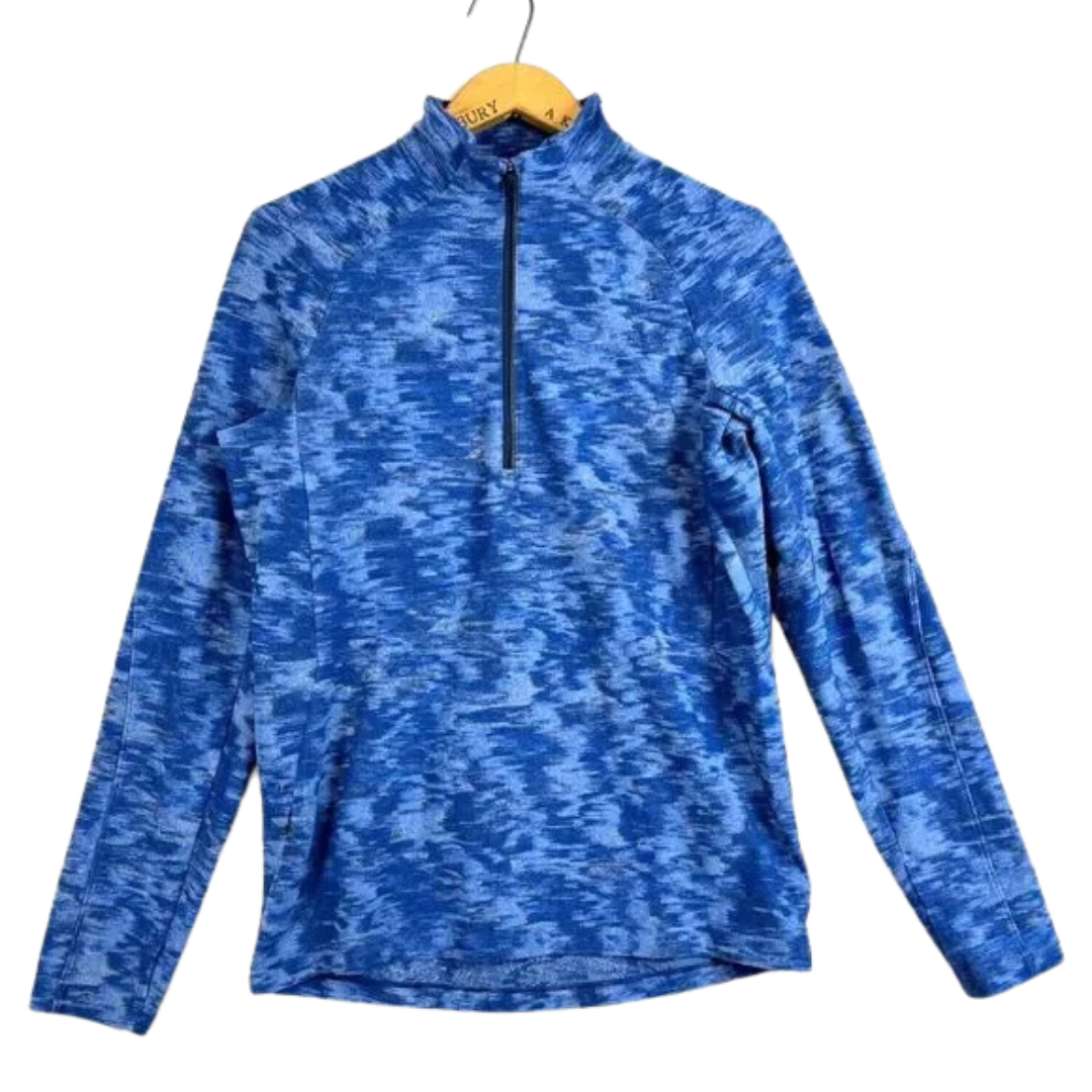 Description: Lululemon Surge Half Zip Pullover in blue combines lightweight performance with a streamlined athletic design. Crafted from sweat-wicking, quick-drying fabric with built-in stretch, it’s ideal for running, training, or layering. A premium Lululemon performance essential in excellent condition.