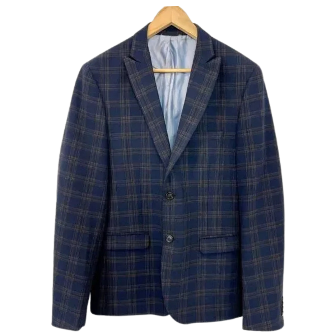 Description: Marciano Guess Stretch Retro Check Blazer in blue channels a sleek vintage-inspired aesthetic with a modern tailored fit. Crafted from a stretch fabric blend for comfort and flexibility, this blazer is ideal for smart-casual or evening occasions. A statement Marciano piece in excellent condition.