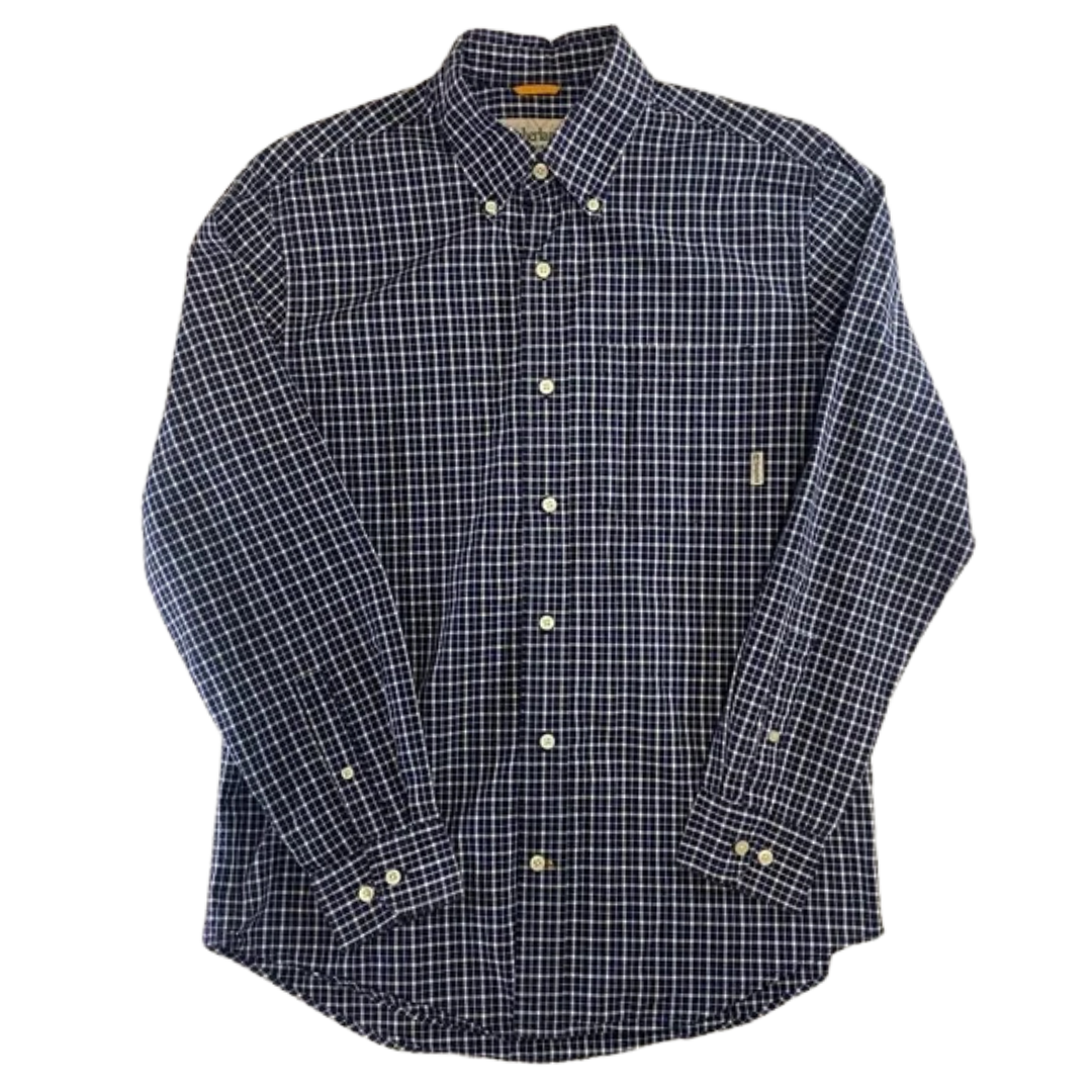 Description: Timberland Regular Fit Button-Down Shirt in navy and white delivers rugged yet refined style with a clean, versatile look. Crafted from durable cotton fabric, this shirt combines comfort with Timberland’s heritage of quality craftsmanship. A dependable wardrobe staple in perfect condition.