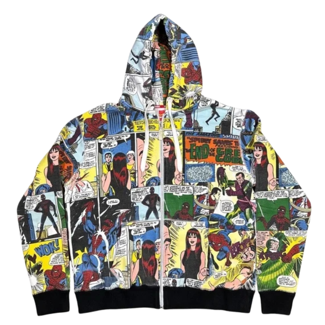 Description: Marvel x New Era Spider-Man Green Goblin Hoodie in multicolor showcases bold comic-inspired graphics with a relaxed hoodie fit. Crafted from soft fleece, this piece combines everyday comfort with standout collector appeal for Marvel fans. A must-have crossover essential in good condition.