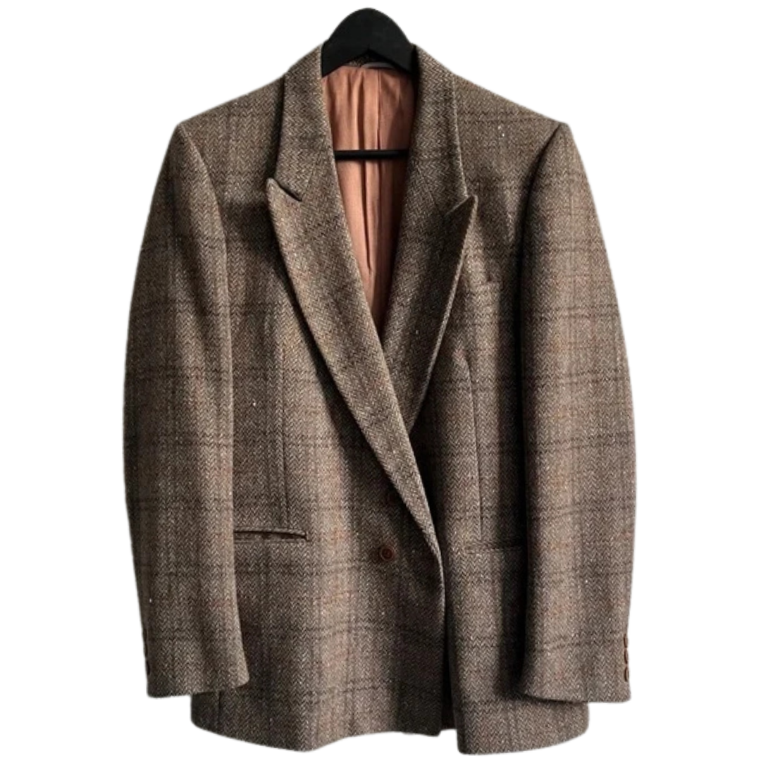 Description: Baumler Wool Silk Blazer in brown check blends traditional craftsmanship with refined texture. Made from a luxurious wool-silk blend, this blazer offers a comfortable drape and timeless elegance suitable for both formal and semi-casual occasions. A sophisticated Baumler essential in good condition.