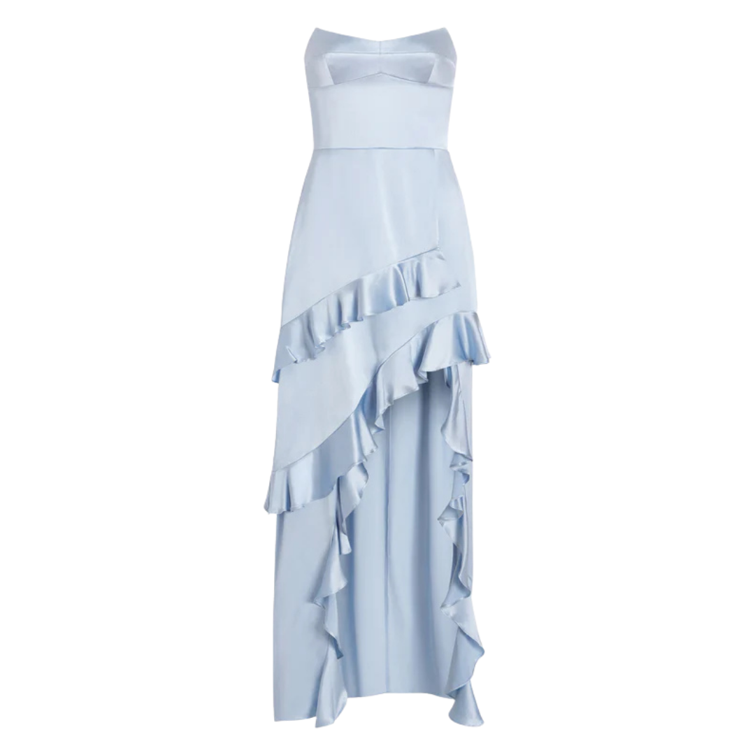 Description: The Amanda Uprichard Monterey Ruffled Midi Dress is the perfect blend of soft femininity and refined sophistication. Designed in a serene light blue hue, this dress features cascading ruffles along the neckline and hem, a flattering cinched waist, and a flowy midi-length skirt that moves effortlessly. Crafted from lightweight fabric with a silky finish, it’s ideal for weddings, garden parties, or warm-weather soirées. New without tags and in pristine condition — elegant, airy, and ready to wear.