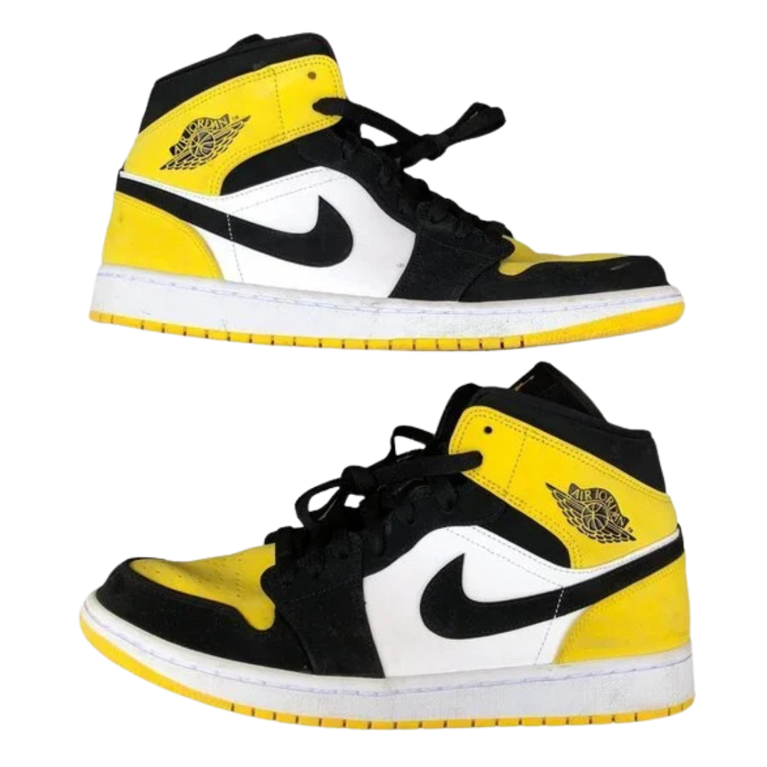 Description: Nike Air Jordan 1 in a bold yellow, white, and black colorway. This iconic high-top sneaker combines heritage basketball style with modern streetwear appeal. Comfortable fit, durable construction, and a must-have addition for sneaker collectors or everyday wear.