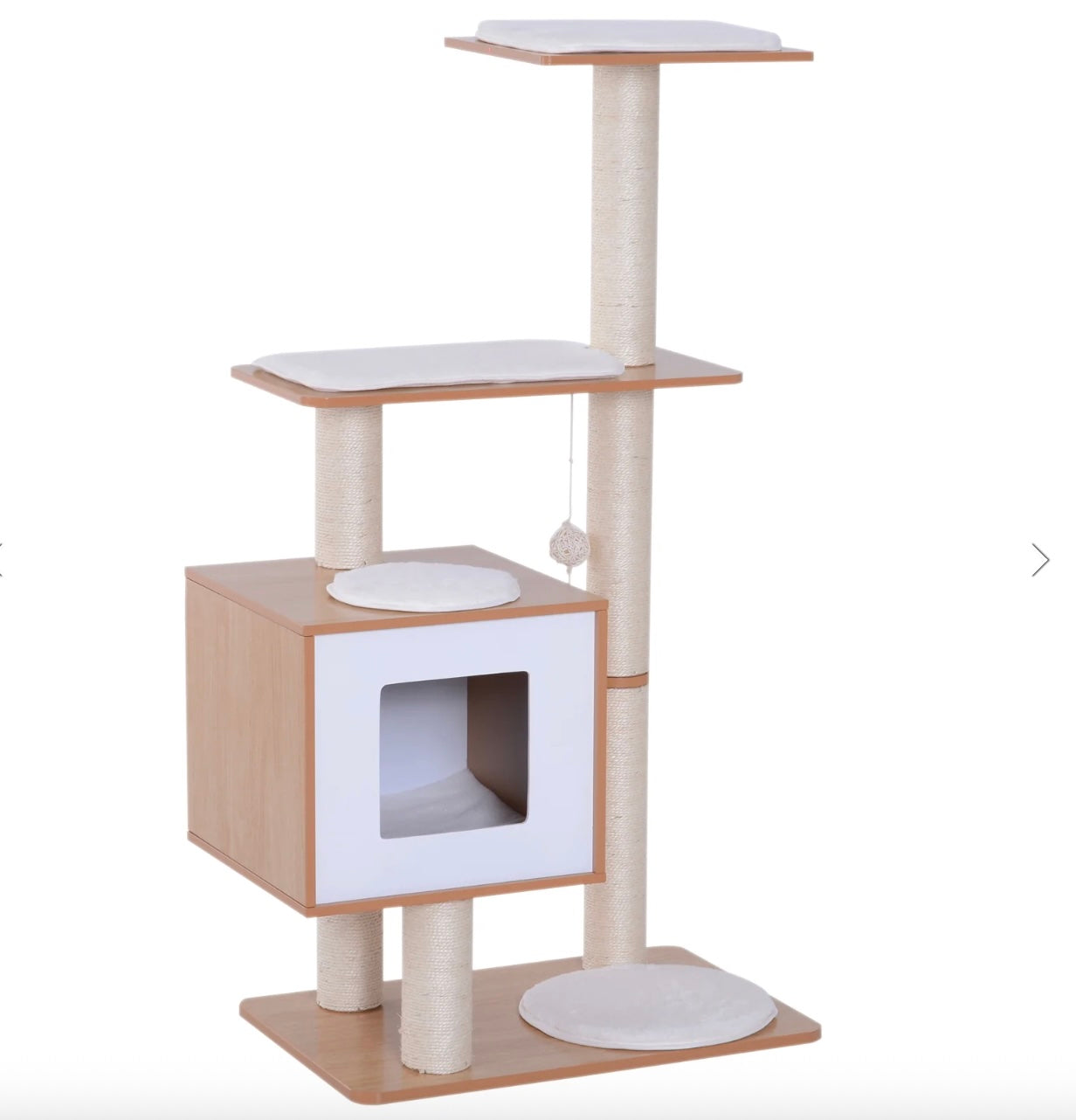 Description: The PawHut 47” Premium Wood Cat Tree is a modern, multi-level activity center designed to entertain and comfort your feline companions. Built with durable engineered wood and a clean, minimalist aesthetic, it seamlessly blends into any home décor.