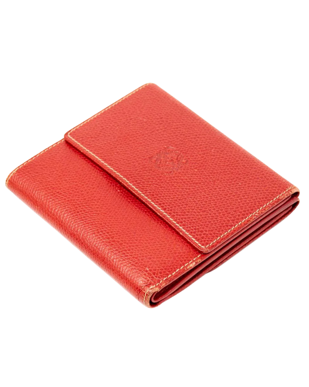 Description: LOEWE Compact Wallet in vibrant orange showcases the brand’s impeccable craftsmanship and timeless design. Made from smooth calfskin leather with a minimalist silhouette, it features a snap closure, multiple card slots, a bill compartment, and a coin pocket for organization. The exterior is subtly embossed with the LOEWE Anagram logo. Excellent condition with clean leather, sharp edges, and minimal signs of use — a sleek and functional luxury essential.