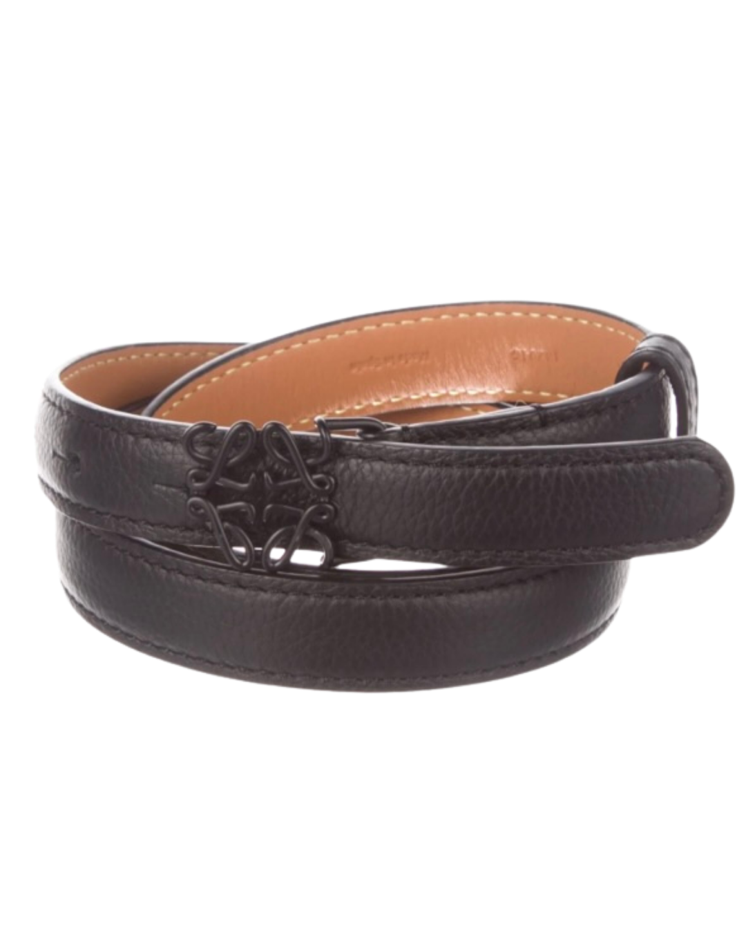 Description: LOEWE Calfskin Leather Waist Belt in dark brown exemplifies the brand’s understated luxury and refined craftsmanship. Made from smooth calfskin leather with hand-painted edges, it features a polished gold-tone buckle and subtle LOEWE logo embossing for a timeless finish. Designed to accentuate the waist, it pairs beautifully with dresses, trousers, or tailored outerwear. Excellent condition with clean leather, bright hardware, and minimal signs of wear — a classic accessory that elevates any look.