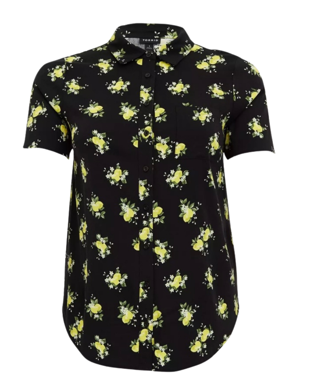Description: This Torrid Stretch Challis Button-Front Shirt in black and yellow offers a perfect blend of comfort and polish. Made from lightweight, flowy challis fabric with a hint of stretch, it provides a flattering drape and easy movement. The button-front design and vibrant pattern add a touch of sophistication to everyday wear — ideal for both casual and work settings. Excellent condition — soft, breathable, and ready to wear.