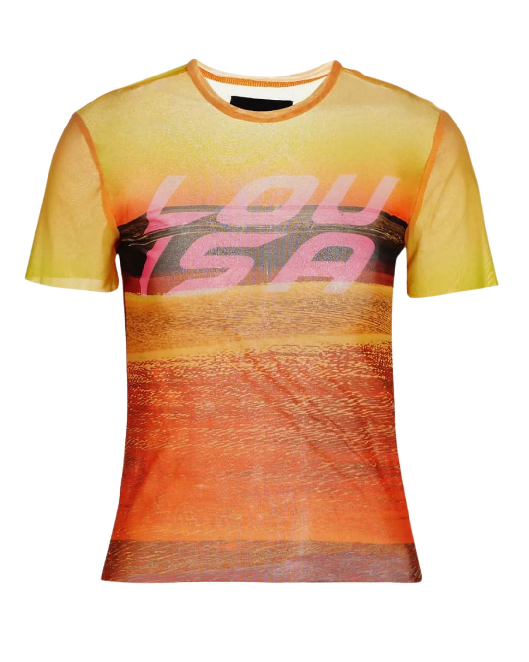 Description: Louisa Ballou Painted Sunset Top channels the brand’s signature tropical edge with a vibrant print inspired by coastal sunsets. Designed in bold tones of orange, yellow, black, and pink, this top features a sleek, form-fitting silhouette that flatters the figure while remaining effortlessly modern. In excellent condition.