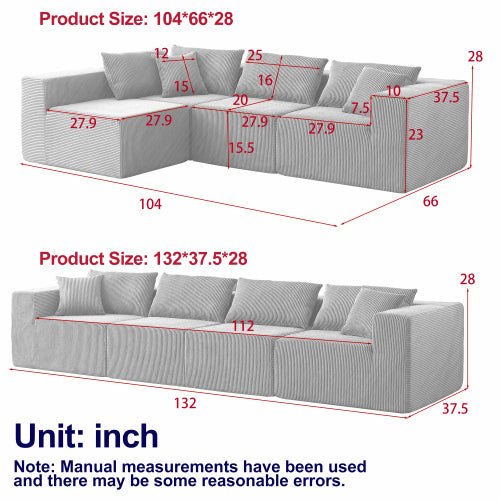 - Minimalist Modular Sectional Sofa Set: The modern modular L-shape sofa couch features a simple style, focusing more on clean lines and premium Corduroy fabric to bring a timeless and chic to your home, sure make your living room the center of attention.